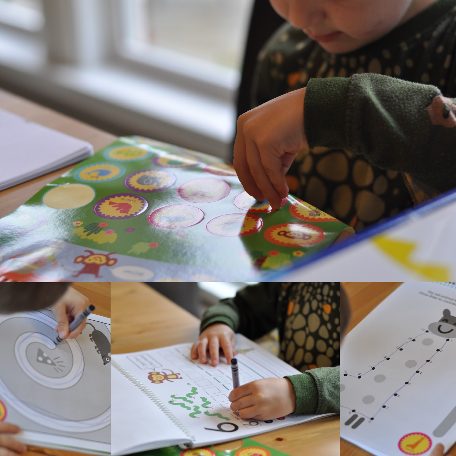 Our sets included a couple of different writing tablets, including "I can write upper case" "I can write numbers" and "max and alphie's adventures: activity book 2 (his favorite)". The skills are fun and appropriate. Each of these workbooks has a great reward sticker system. The stickers match the specific activity completed, which he liked. The rewards gave him the motivation to do the work. Even the reward system builds fine motor skills, by exercising the pincher grasp.